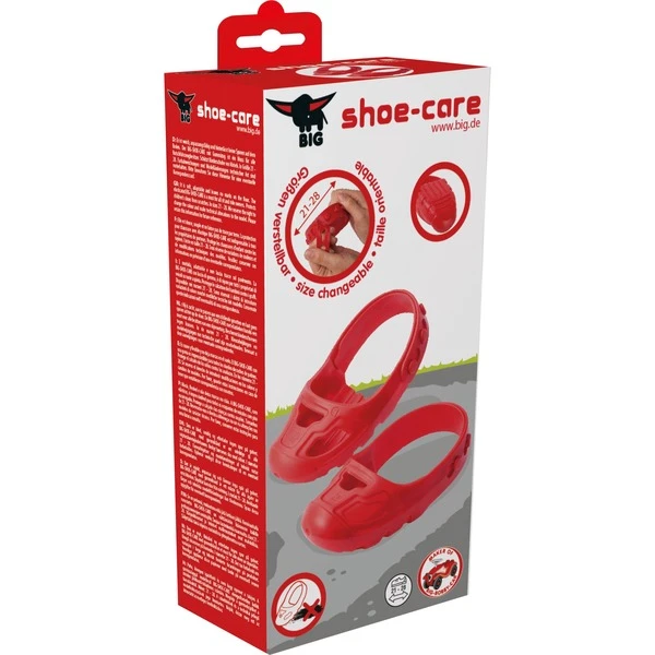 Bei der Fahrt auf Kinderfahrzeugen können durch harte Untergründe, scharfes Bremsen oder vieles mehr Kinderschuhe in Mitleidenschaft gezogen werden. Nun heißt es volle Fahrt voraus. Denn dank der BIG-Shoe-Care können Eltern aufatmen und kleine Nachwuchsrennfahrer ihre komplette Aufmerksamkeit nur noch auf das Ausprobieren der verschiedenen Fahroptionen konzentrieren. Denn die BIG Schuhschoner schützen die Schuhspitzen zuverlässig vor Abrieb. Die Schuhschoner aus weichem Kunststoffmaterial lassen sich durch die integrierten Rastnasen leicht auf die Größe der Schuhe einstellen und können so an allen gängigen Kinderschuhen in den Größen 21 – 27 befestigt werden. Für einen guten Halt beim Fahren und Laufen sorgt das Anti-Rutsch-Profil auf der Unterseite der Schuhschoner. Dabei hinterlässt der hochwertige Kunststoff keine Spuren auf Böden.Art.-Nr.: 1237098