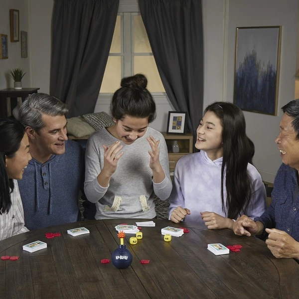 Mit Ka-Blab! erreicht das klassische Kategorienspiel ein neues Level und fordert Familien zu einem rasend-hitzigen Spielspaß heraus. Die Würfel entscheiden, wie viele Dinge in einer bestimmten Kategorie der Spieler ausplaudern muss – hier ist schnelles Denken angesagt, denn die Zeit läuft! Sobald der elektronische Timer in Form einer Bombe stoppt, verliert der Spieler, der gerade an der Reihe ist, eine Spielmarke. Wie viele Zeichentrickfiguren können Sie nennen? Welche Gründe für einen Hausarrest gibt es? Wer plaudert Sachen aus, die er am Telefon macht? Solche und weitere Dinge gilt es zu nennen, bis die Würfel endlich an den nächsten Spieler weitergegeben werden dürfen. Wer zum Schluss noch über Spielmarken verfügt, gewinnt! Das turbulente Spiel wartet mit 200 Kategoriekarten für jede Menge Überraschungen und Herausforderungen auf und sorgt für Spaß und Nervenkitzel beim nächsten Familien-Spieleabend. Für Spieler ab 10 Jahren geeignet. Art.-Nr.: 1771689