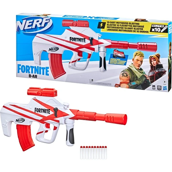 | Inhalt/Ausstattung | Fortnite B-AR Blaster, 10-Dart Clip-Magazin, 10 Elite Darts | ||