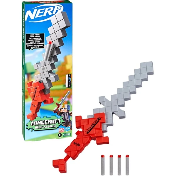 Mit dem Nerf Minecraft Heartstealer kommen Nerf und Minecraft in einem Produkt zusammen. Mit diesem originalgetrau gestalteten Schwert lassen sich Schaumstoff-Darts abfeuern. Indem das Schwert geschwungen wird und dann einen Dart losschickt, können Gegner überrascht werden. Mit dem Schwert lässt sich jeweils 1 Dart abfeuern: Um einen Dart abzufeuern, wird ein Dart eingelegt, am Spannhebel gezogen und der Knopf gedrückt. Der Heartstealer hat eine Schaumstoffklinge und es werden 4 Nerf Elite Darts aus Schaumstoff mitgeliefert, die gut für drinnen und draußen geeignet sind.Art.-Nr.: 1894056