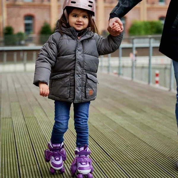 Diese verstellbaren Kinderrollschuhe erleichtern den Einstieg ins Rollschuhlaufen und ermöglichen schnelle Erfolgserlebnisse. Auf je vier leisen PU-Rollen und mit einem robusten Chassis bietet der Rollschuh My First Quad viel Sicherheit und Stabilität. Die auf geschlossenen Carbon-Kugellagern gleitenden High Rebound-Rollen sind mit einer Härte von 82A gut für das Fahren auf dem Bürgersteig geeignet. Die Lenkung des My First Quad ist so eingestellt, dass auch Anfänger leicht die Spur halten können. Ein Gelenkschutz an Ferse und Knöchel gibt Halt, der integrierte Stopper an jedem Schuh macht Bremsen zum Kinderspiel. Die Stopper befinden sich am hinteren Ende des Schuhs – so lernen Einsteiger wichtige Bewegungsabläufe, die später beim Inlineskating wichtig werden. Mit zwei Push-Lock- Schnallen mit Ratschenband sind die Kinderrollschuhe schnell angezogen und optimal an den Fuß angepasst – das geht so einfach, dass Kinder die My First Quad einfach allein an- und ausziehen können. Luftlöcher in der Hülle und Aussparungen im Überschuh sorgen auch bei höchster Aktivität für eine gute Belüftung. Die extra-großen Hinterrollen von 80 x 20 Millimetern Durchmesser sorgen gemeinsam mit den kleineren Frontrollen (40 x 18 mm) für festen Stand.Art.-Nr.: 1902814