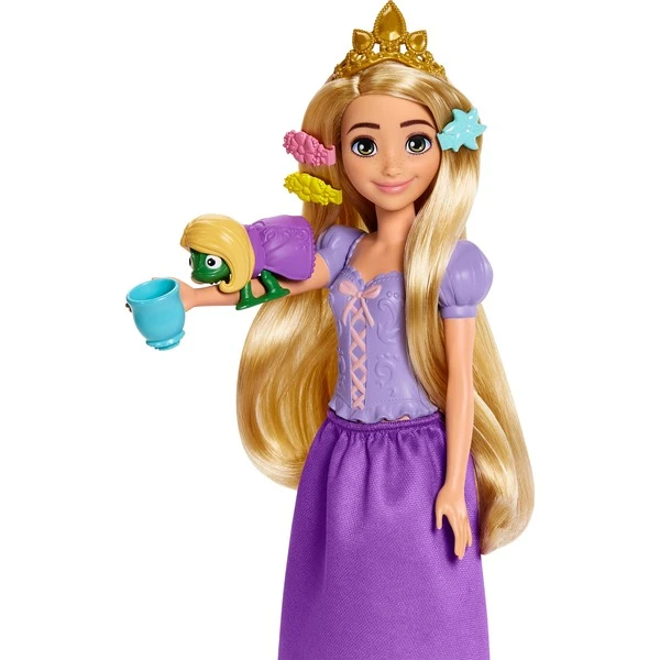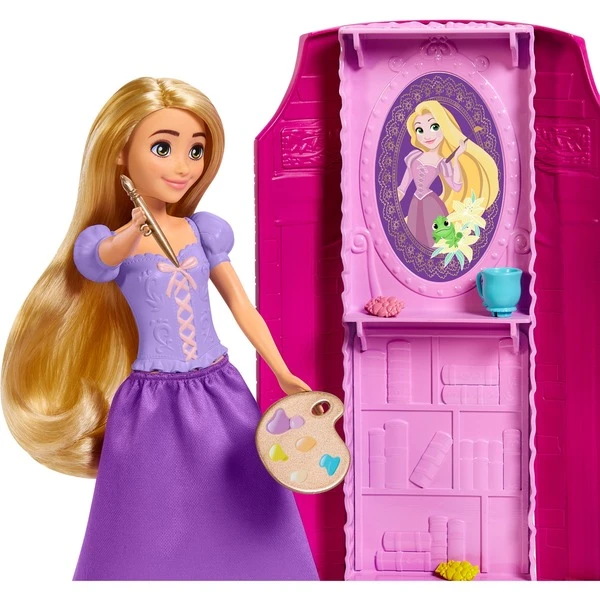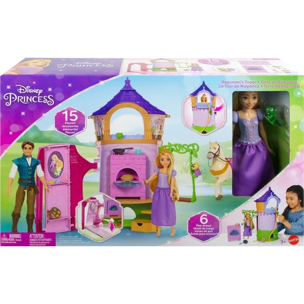 Rapunzels Abenteuer werden mit diesem Spielset Wirklichkeit! Es enthält 6 Spielbereiche, 14 Zubehörteile, eine Rapunzel-Puppe sowie eine Pascal-Figur – alles inspiriert vom Disney-Film „Rapunzel – Neu verföhnt“. Der Turm besitzt ein umbaubares Schlafzimmer, eine Küche, einen Ankleidebereich für Pascal und eine Schaukel im Freien. Pascal kann mit einem Clip an Rapunzels Arm oder der Schaukel befestigt werden. Rapunzel hat lange Haare und kommt mit einer Bürste und verschiedenen Haar-Zubehörteilen. Sie trägt das bekannte lila Kleid mit abnehmbarem Rock. Art.-Nr.: 1889900