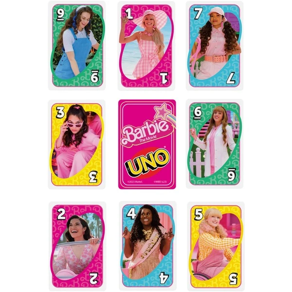 Ein Uno-Spiel passend zum Barbie-Spielfilm – für alte und neue Barbie-Fans. Das Spiel funktioniert nach dem klassischen UNO-Prinzip, enthält aber Motive aus dem Barbie-Film: Auch hier gilt es, möglichst schnell passende Farben und Zahlen zu finden und abzulegen. Zusätzlich gibt es die Sonderregel „Zu viel gespielt“, bei der die Spieler Karten sowohl abwerfen als auch aufnehmen müssen. Und ganz wichtig: Niemals bei der letzten Karte vergessen, „UNO!“ zu rufen! Art.-Nr.: 1919563