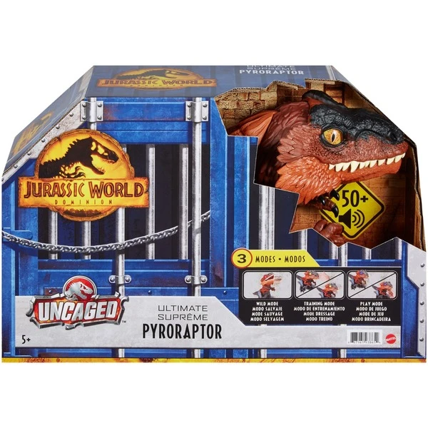 Jetzt geht das Actionabenteuer mit Jurassic World: Ein neues Zeitalter so richtig los! Diese ultimative Pyroraptor-Figur, die auf der im Film vorgestellten Spezies basiert, wurde aus dem Käfig freigelassen. Dieser Dino reißt sein riesiges Maul weit auf, hat einen sich drehenden Körper und einen Schwanz, der sich hebt und senkt. Außerdem hat er animierte Augenbrauen und Federn, die sich angriffslustig aufrichten. Jeder Moment ist eine aufregende und interaktive Überraschung! Mit mehreren Berührungssensoren an Kopf und Körper reagiert dieses elektronische Dinosaurierspielzeug auf jedes Stoßen, Streicheln und Drücken ganz verschieden: Vom wilden Modus über den Trainingsmodus und den Herausforderungsmodus bis hin zum freien Spiel. Die Augenfarbe ändert sich mit dem Modus. Filmgetreue Details machen diesen Dino erschreckend lebensecht und die beweglichen Gelenke ermöglichen einen großen Bewegungsspielraum.Art.-Nr.: 1822382