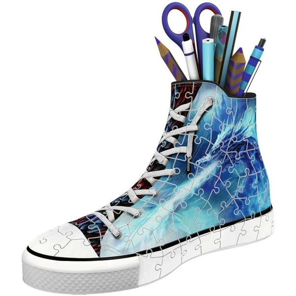 Dieses coole 3D-Puzzle lässt einen Sneaker im Fantasy-Design mit Drachen entstehen. Es ist nicht nur ein dekorativer Blickfang, sondern bietet auch reichlich Platz für Utensilien. Die 108 nummerierten Kunststoff-Puzzleteile und die perfekt passenden Zubehörteile können zur praktischen Aufbewahrung genutzt werden. Dank der bebilderten Anleitung und den Zahlen auf der Rückseite der Puzzleteile ist das Puzzeln des Organizers kinderleicht.