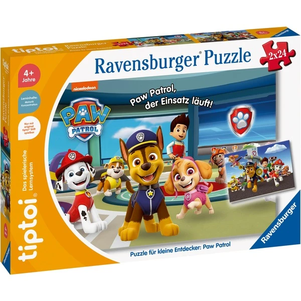 Bei diesem tiptoi-Puzzle ist der Puzzlespaß nur der Anfang: Sind die zwei Puzzles mit jeweils 24 Teilen zusammengesetzt, geht es mit der Paw Patrol und ihren vierbeinigen Helfern auf Rettungseinsatz. Und in der Welt von Ryder und seinen Freunden gibt es mit tiptoi tolle Abenteuer zu erleben!Art.-Nr.: 1876144