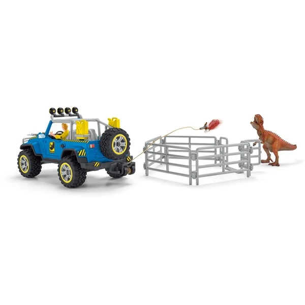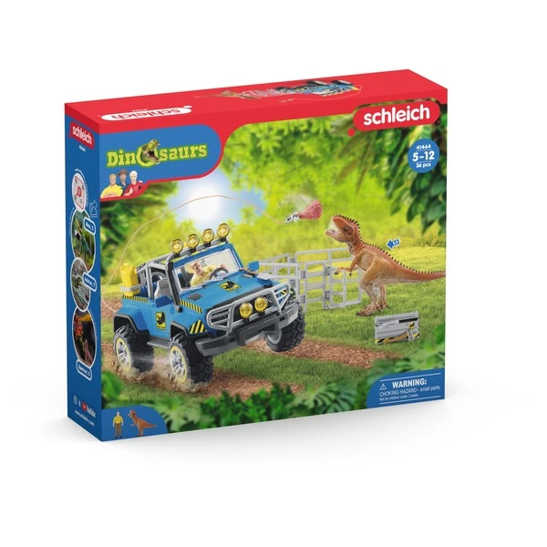 Mit dem Geländewagen kann LUIS schnell zum Außenposten fahren und dort den Giganotosaurus mit Hilfe eines dicken Fleischköders einfangen. Für den Fall, dass er während der Fahrt im Sumpf stecken bleibt, kann er mit Hilfe seiner Werkzeugkiste mühelos den Reifen wechseln oder den Geländewagen mit der Seilwinde wieder herausziehen. Der Geländewagen mit Dino-Außenposten von Schleich Dinosaurs bietet eine Vielzahl an Spielmöglichkeiten. Entdecke die gesamte Schleich Dinosaurs Welt und die spannenden Abenteuer der Colby Brüder unter www.schleich-dinosaurs.comArt.-Nr.: 1832483
