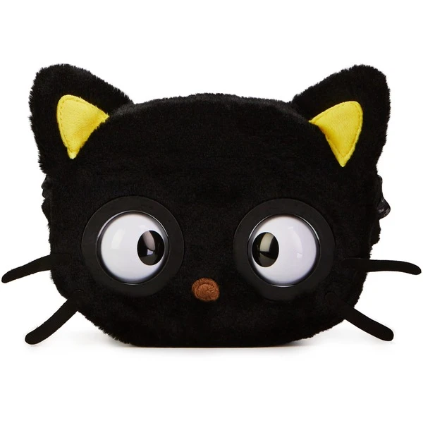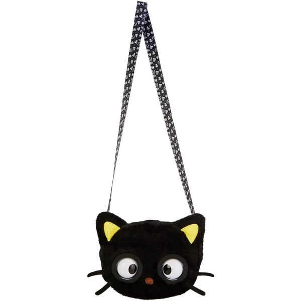 Chococat, der schwarze Kater aus der Welt von Hello Kitty and Friends, ist dank seiner Schnurrhaare, die wie Antennen funktionieren, immer bestens informiert. Beste Unterhaltung bietet Chococat als streichelweiche Purse Pets Plüschtasche, die bei Berührung mit mehr als 30 Geräuschen und Reaktionen sowie Musik lebendig wird. Die Stirn antippen und schon schließt und öffnet Chococat seine großen Kulleraugen mit niedlichem Silberblick. Drückt man die Nase und hält die Stirn, wird der Stadtbummel von Musik begleitet, damit Fans sich wie auf dem Laufsteg fühlen können. Unsicher in der Wahl des Outfits? Auch hier macht Chococat beratende Kommentare in Form von Geräuschen. Da Chococat gerade bei älteren Fans beliebt ist, ist er nicht nur größer als herkömmliche Purse Pets Taschen, sondern besitzt auch einen längeren Riemen von 107 cm, der für eine Körpergröße von bis zu ca. 1,70 m geeignet ist. In das Reißverschlussfach passen neben Handy, Geldbeutel und Schlüssel auch die nötigsten Beautyaccessoires oder auch, passend zu Chococat, Schokolade.Art.-Nr.: 1849618